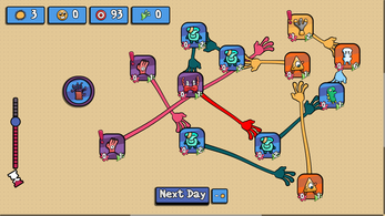 Its denizens have one and only one aim, to create the most Joy! Connect your alien friends to help them wave at each other*. Build complex graphs of friends and let the wave flow through it, creating incredible amounts of Joy. Collect special tokens to improve your Joy producing capabilities.